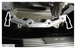 Tighten the 2 transmission crossmember nuts to 103 Nm (75 lb-ft).