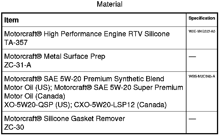 2. NOTICE: Failure to use Motorcraft(R) High Performance Engine RTV Silicone may cause the engine oil to foam excessively and result in serious engine damage.