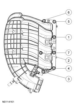 1. NOTICE: If the engine is repaired or replaced because of upper engine failure, typically including valve or piston damage, check the intake manifold for metal debris. If metal debris is found, install a new intake manifold. Failure to follow these instructions can result in engine damage.