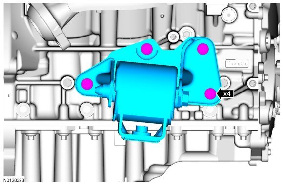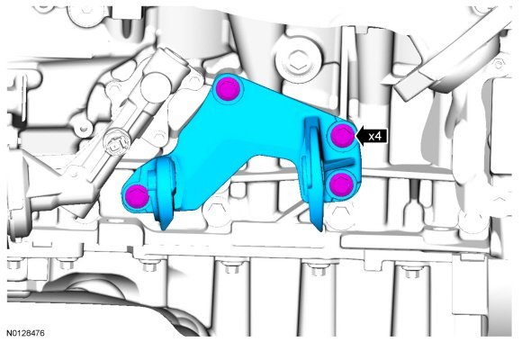 170. Install the LH engine support insulator-to-cylinder block bracket and the 4 bolts.