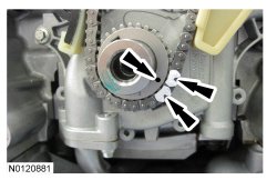 14. NOTE: Removal of the VCT (Variable Camshaft Timing) oil control solenoid will aid in the removal of the primary timing chain.