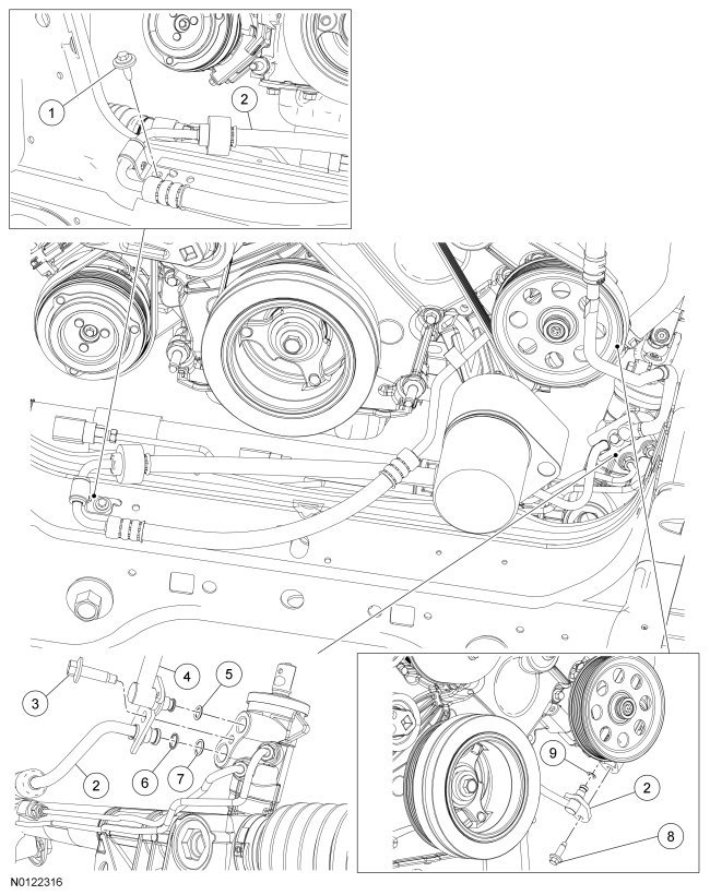 7. Fill the power steering system. For additional information, refer to Steering System - Hydraulic Power Assist Steering (HPAS).