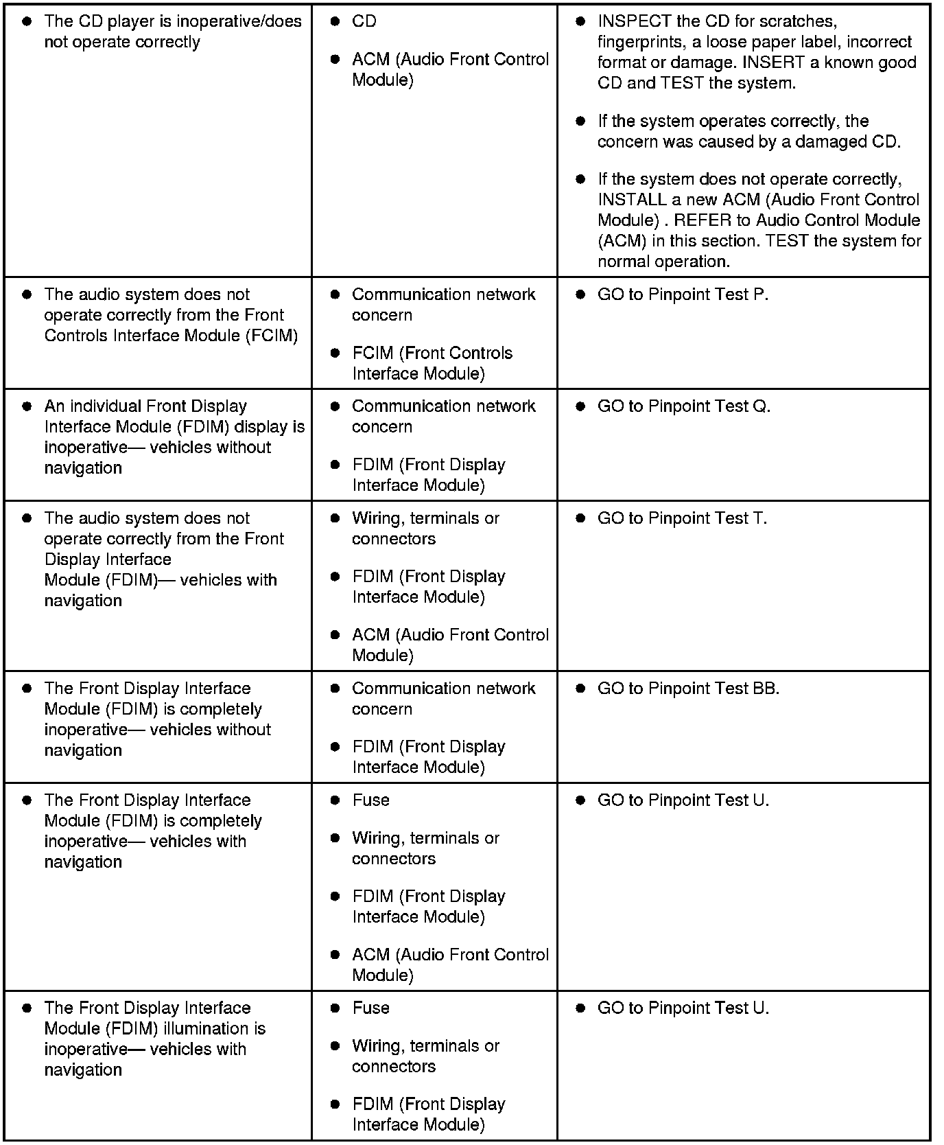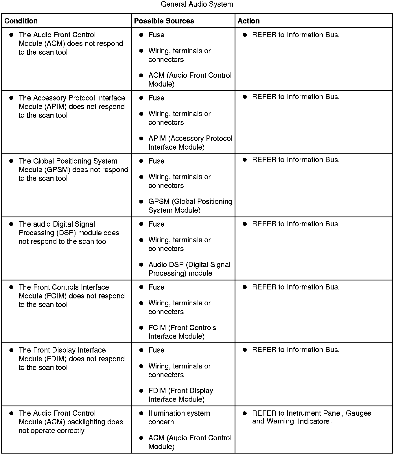Symptom Chart - General Audio System