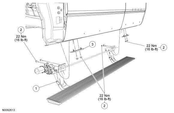 7. Remove the PRB (Power Running Board) assembly rear bracket lower bolts.