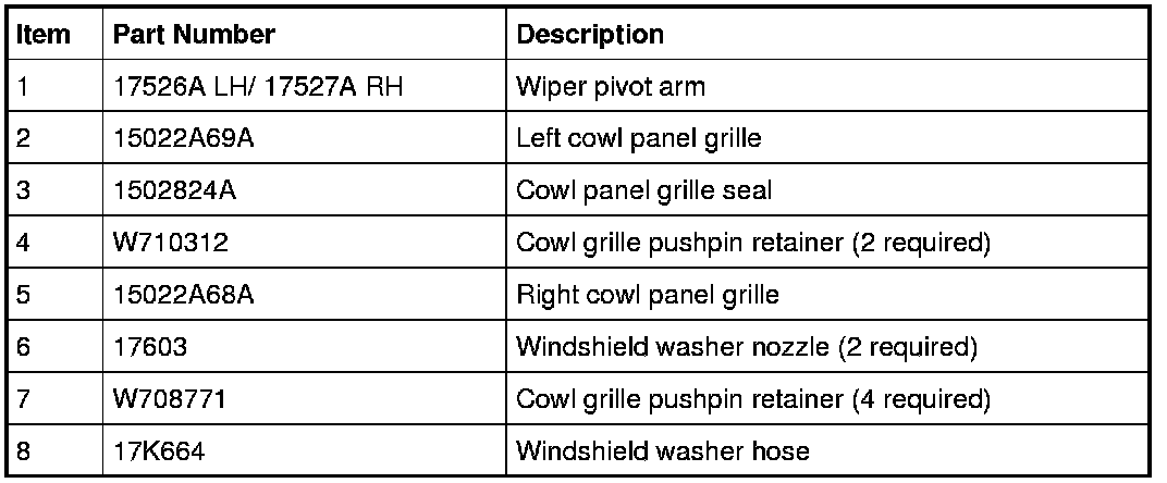 Remove the attaching clips by rotating the clips one-fourth of a turn to release them from the cowl sheet metal. Inspect and replace any damaged clips and reinstall the clips onto the cowl grille panel.