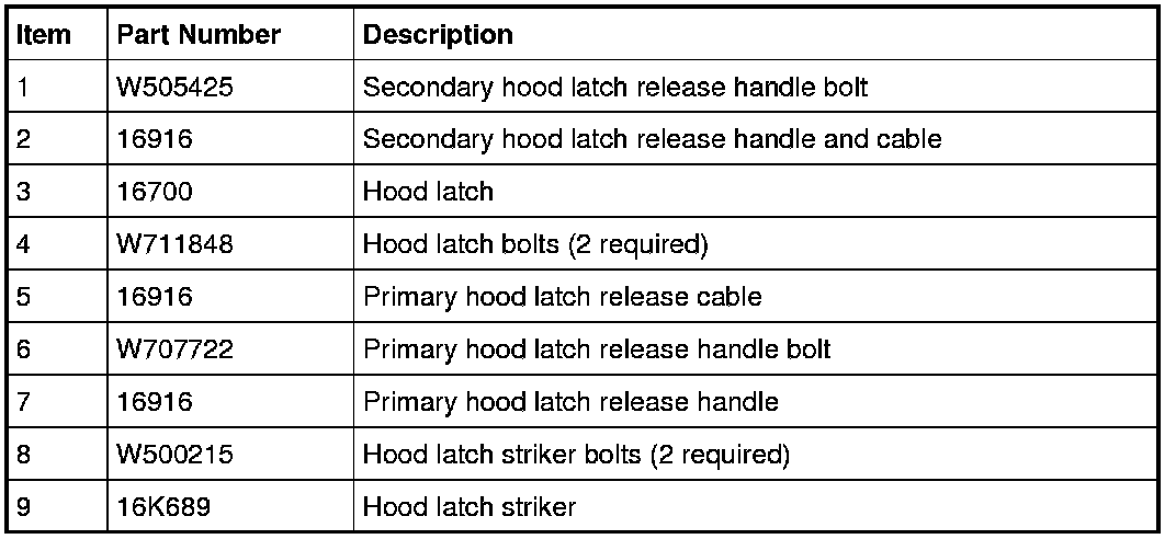 Hood Latch and Components - Exploded View
