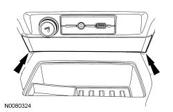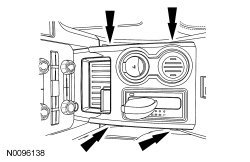 - Lift the floor console upper finish panel upward, at the locations indicated, to release the retaining clips.