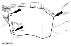48. Remove the RCM (Restraints Control Module) wire harness scrivet and detach the RCM (Restraints Control Module) wire harness pin-type retainer.