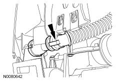 16. Detach the wire harness pin-type retainer and route the parking brake release handle through the lower instrument panel frame.