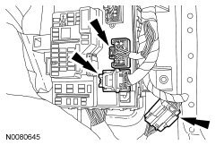 36. Disconnect the electrical connector at the RH lower cowl and the 2 Smart Junction Box (SJB) electrical connectors.