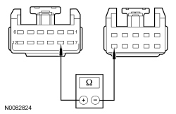 - Measure the resistance between overhead console switch C912-3, circuit CPR38 (WH/BU), harness side and roof opening panel motor/module C921-4, circuit CPR38 (WH/BU), harness side.