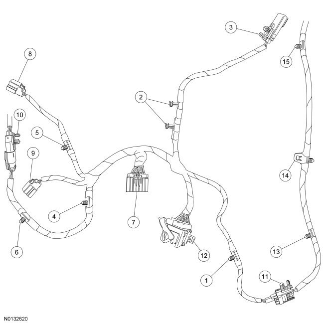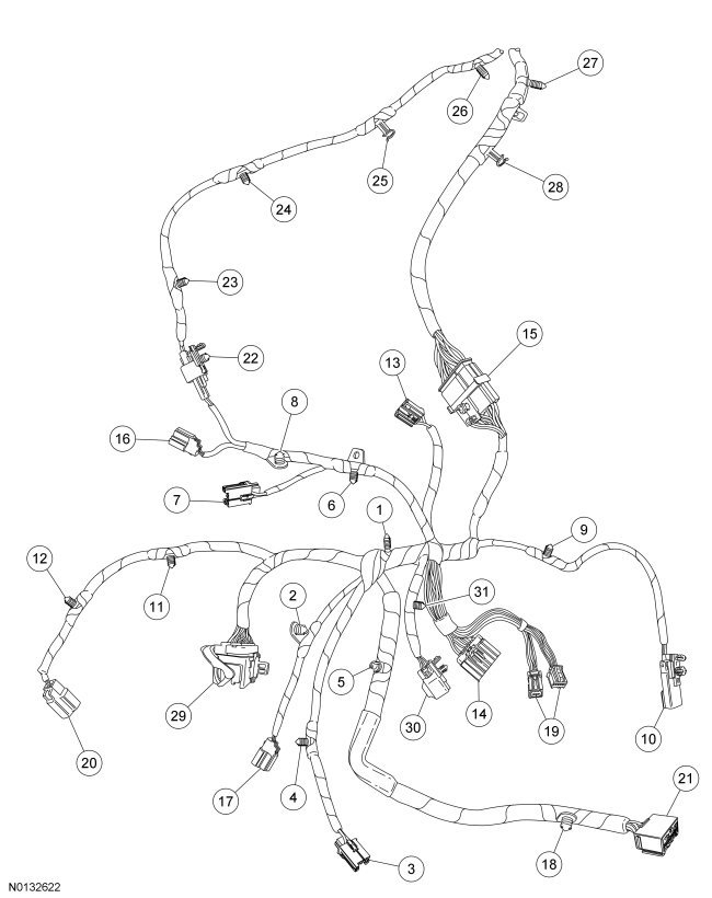 Wire Harness Retainer and Connector Location View