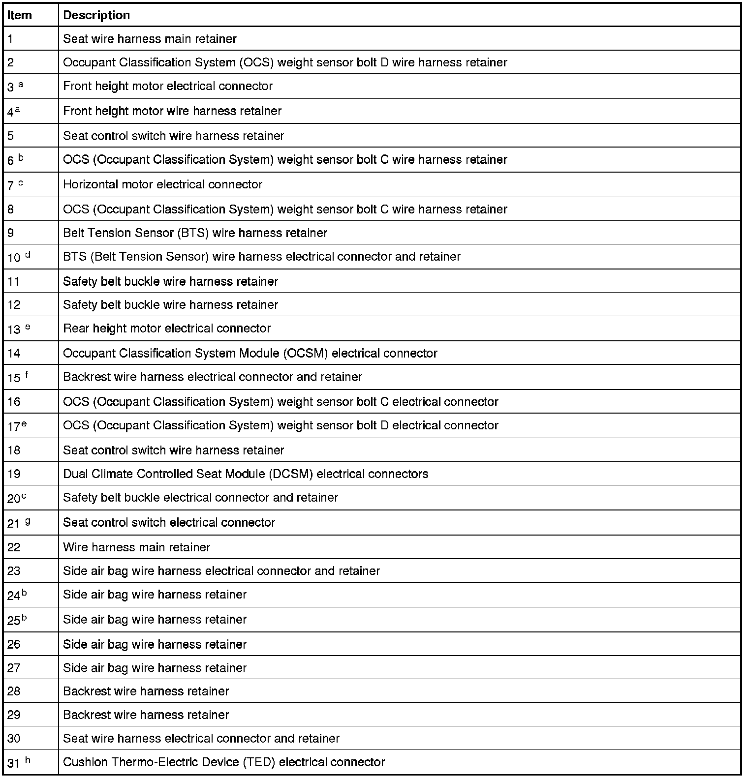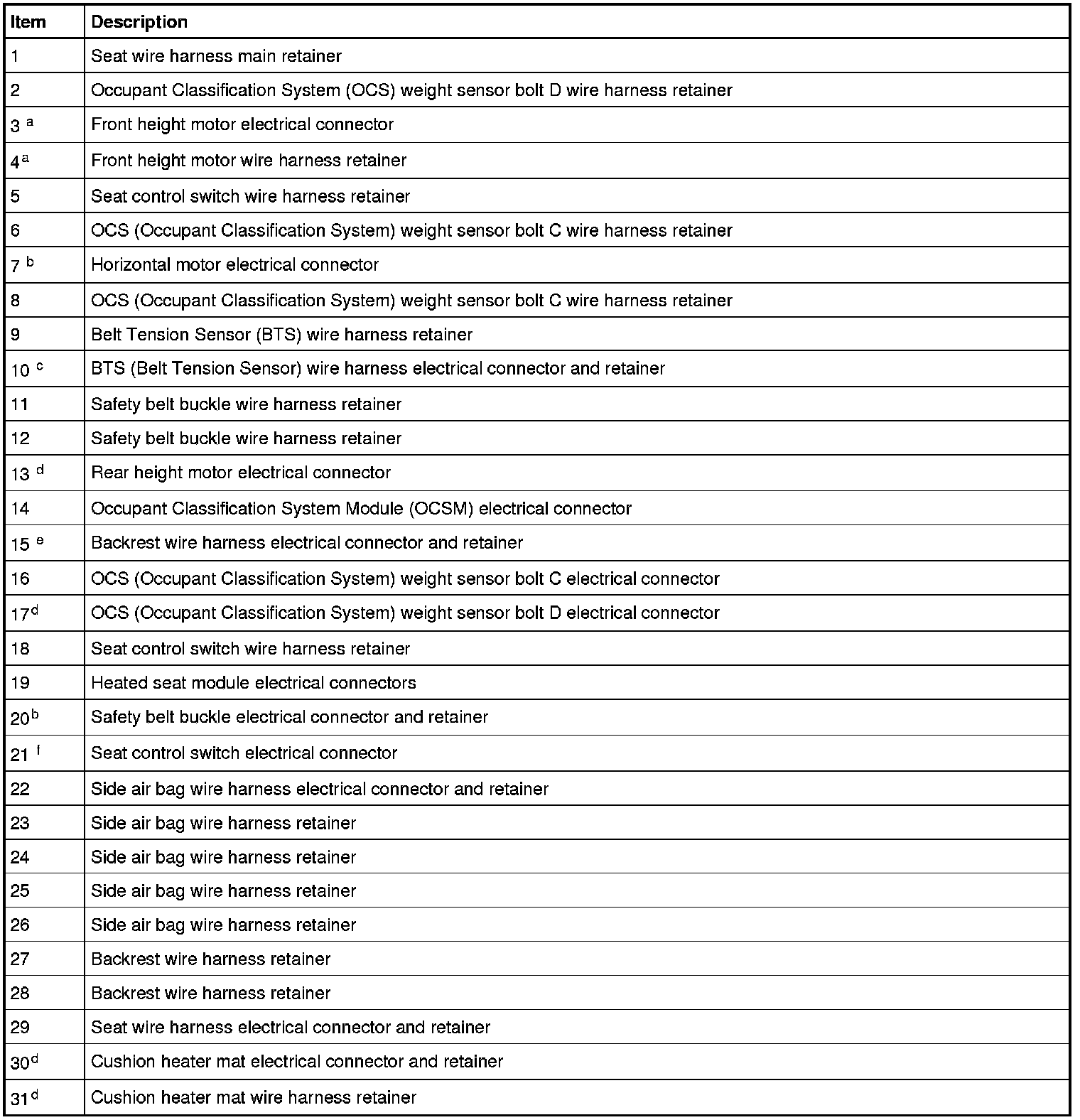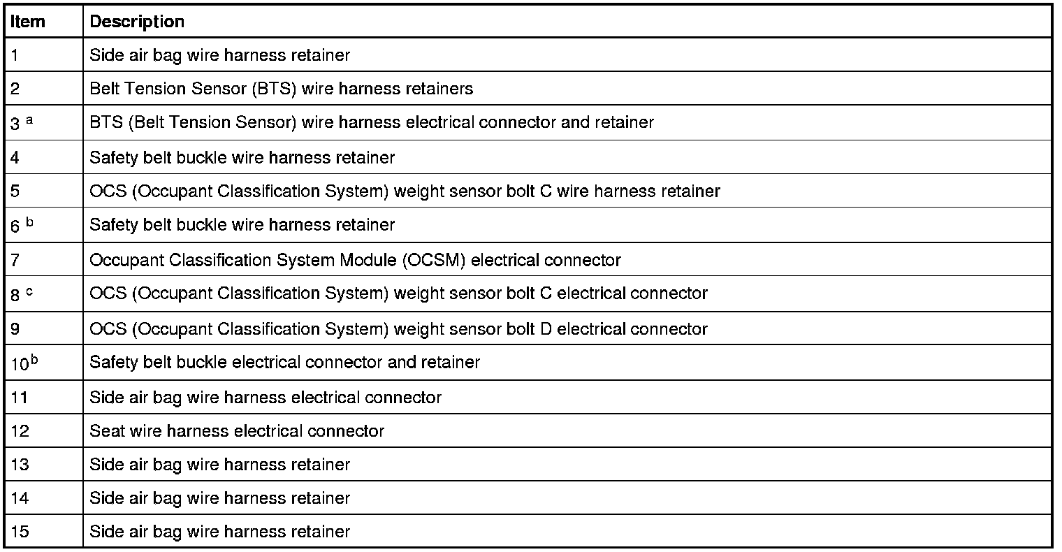 d Refer to Wire Harness Retainer and Connector Location View - Front of Seat.