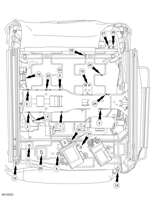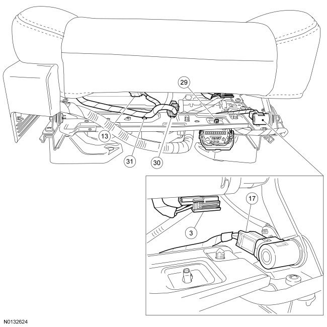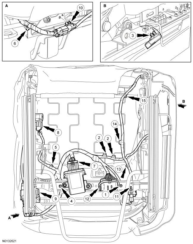 1. Compare the seat with Wire Harness Retainer and Connector Location View to verify correct installation.