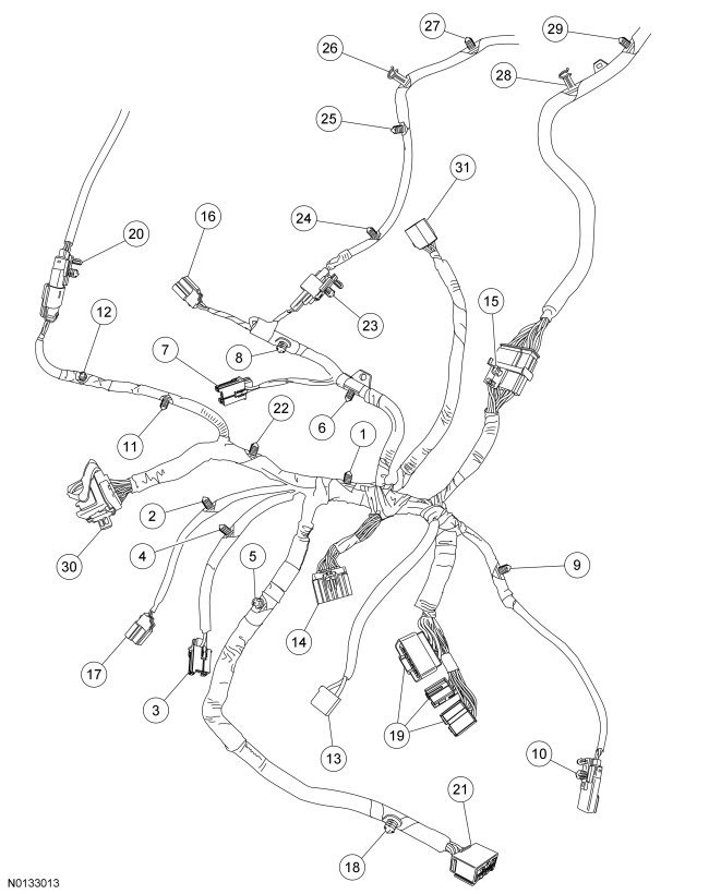 c Refer to Wire Harness Retainer and Connector Location View - Outboard Side.