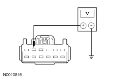 - Measure the voltage between DSM (Driver Seat Module) C341A-1, circuit CBX05 (VT/RD), harness side and ground.
