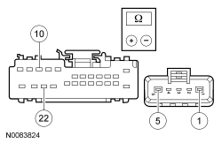 - DSM (Driver Seat Module) C341B-22, circuit CPS05 (BU/WH), harness side and ground.