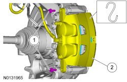 3. NOTICE: Do not allow the caliper to hang from the brake hose or damage to the hose can occur.