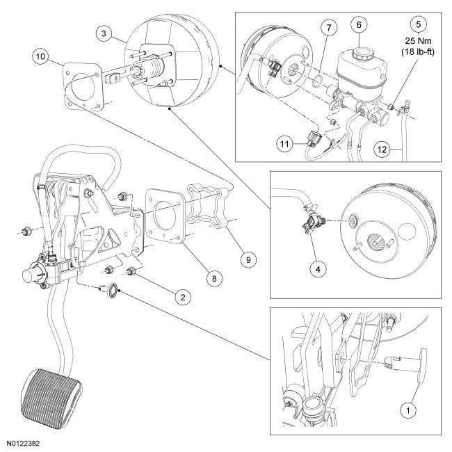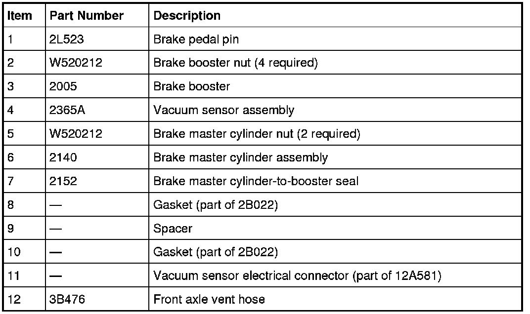1. Relieve the vacuum in the brake booster by pressing and releasing the brake pedal a minimum of 5 times with the engine not running.