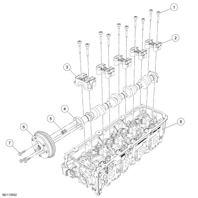 Camshaft Phaser and Sprocket, VCT (Variable Camshaft Timing) System Oil Filter, Camshaft Bearing Caps and Camshaft