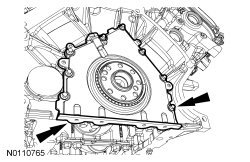 Remove the 8 bolts and the crankshaft rear seal retainer plate.