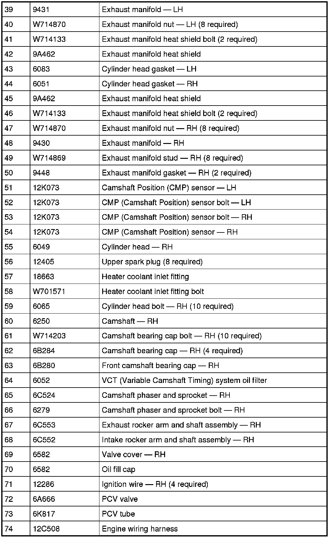 48. Tighten the 10 LH intake rocker arm shaft assembly bolts in the sequence shown, in 3 stages.