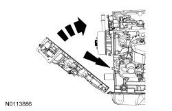 2. Remove the RH and LH Variable Camshaft Timing (VCT) variable force solenoids.