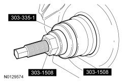 7. Using the Crankshaft Damper and Crankshaft Front Seal Installer and the Front Cover Oil Seal Installer, install a new crankshaft front seal into the engine front cover.