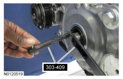 16. Rotate the tensioner clockwise and install the accessory drive belt.
