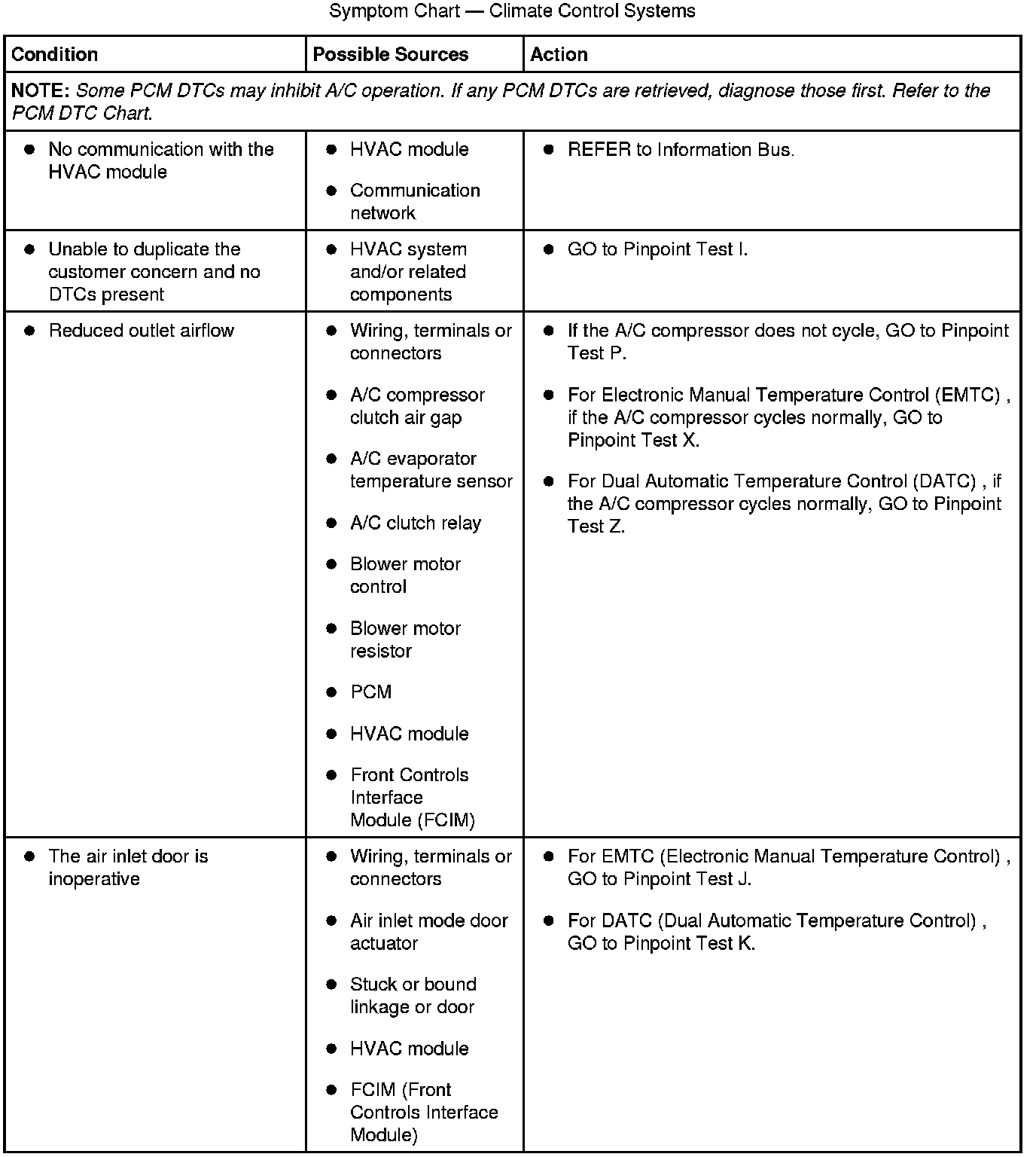 Symptom Chart - Climate Control Systems