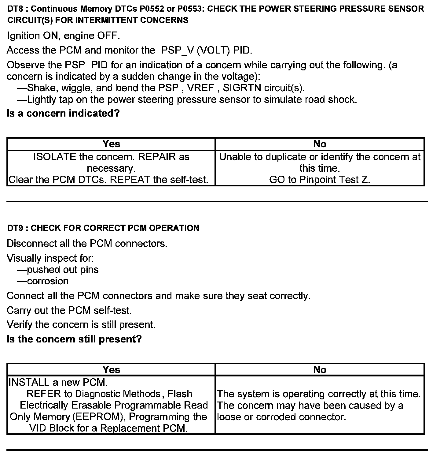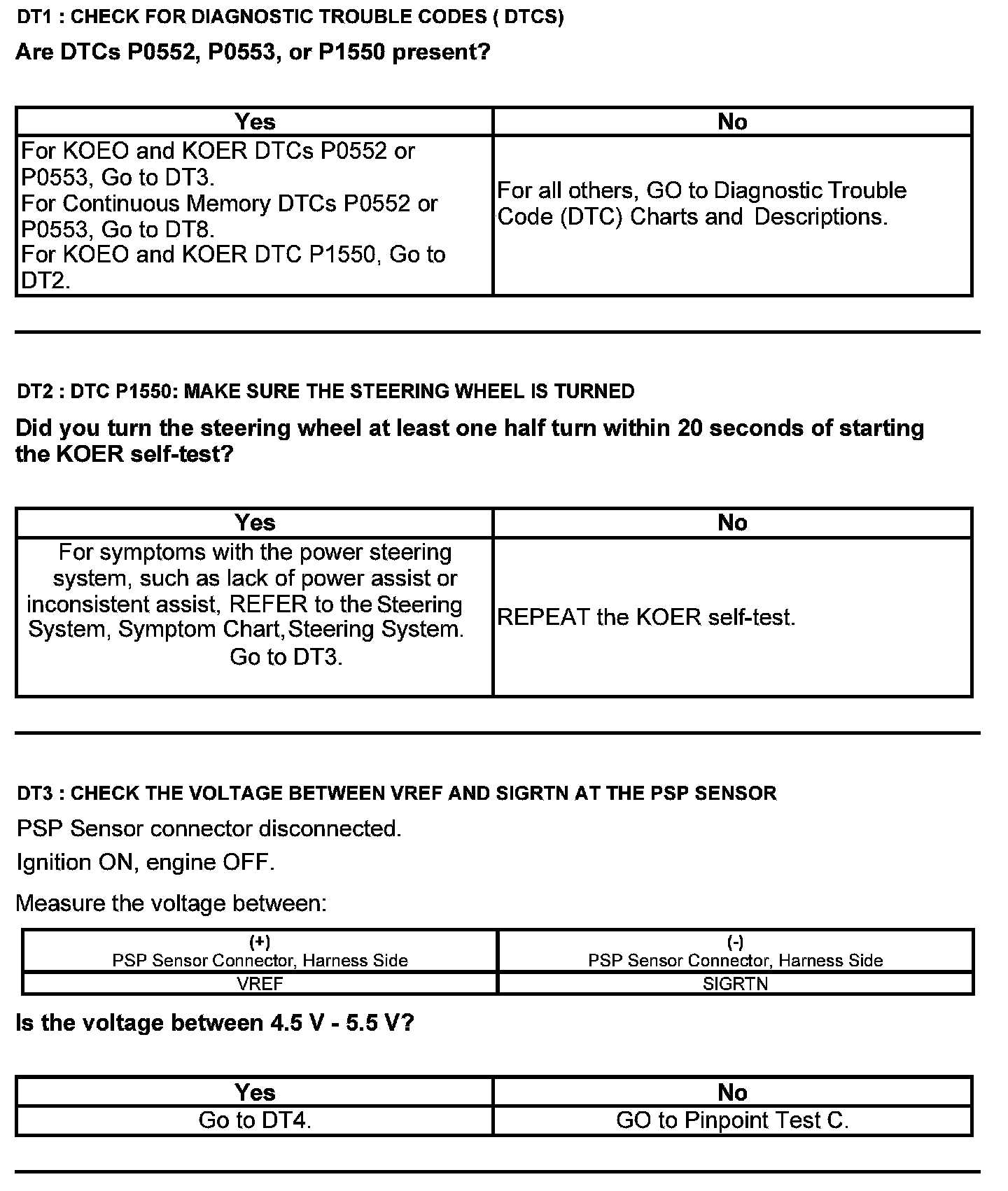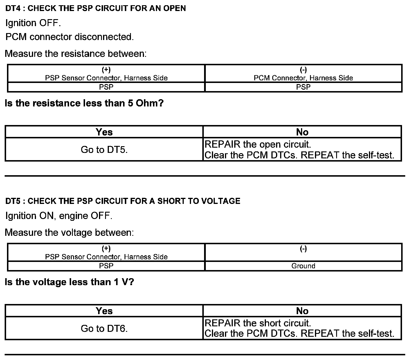 Test DT: Power Steering Pressure (PSP) Sensor