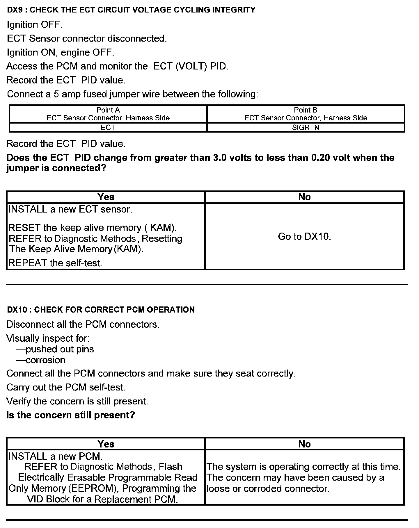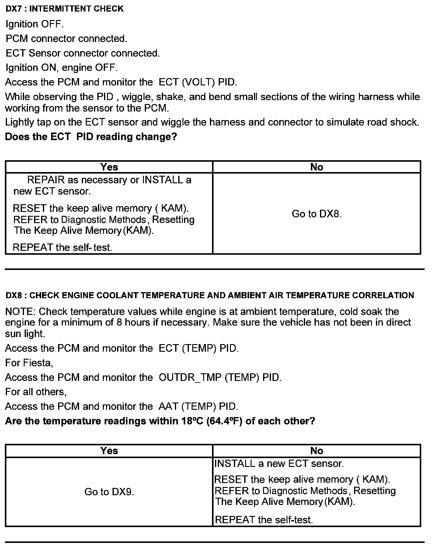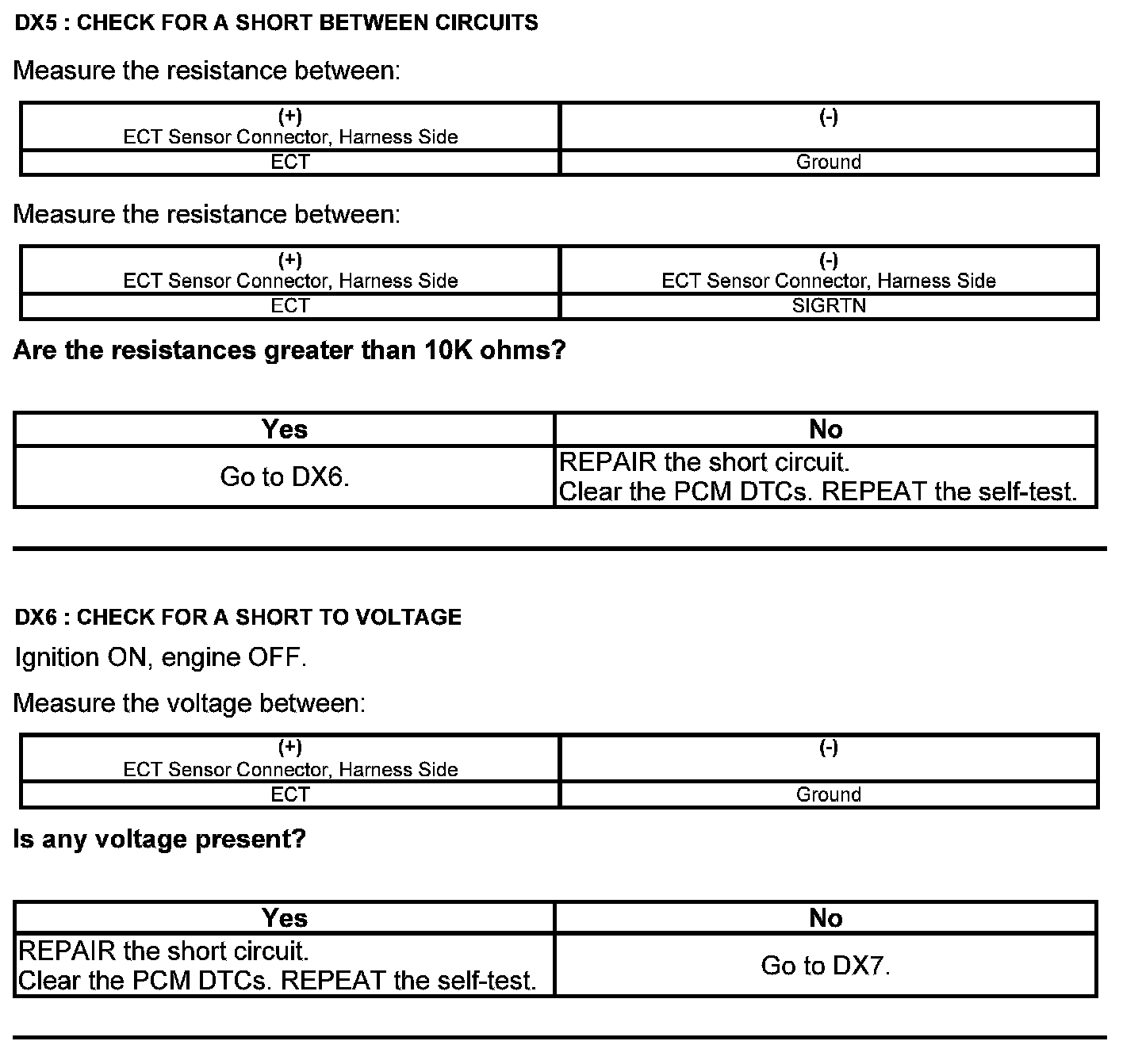 Test DX: Engine Coolant Temperature (ECT) Sensor