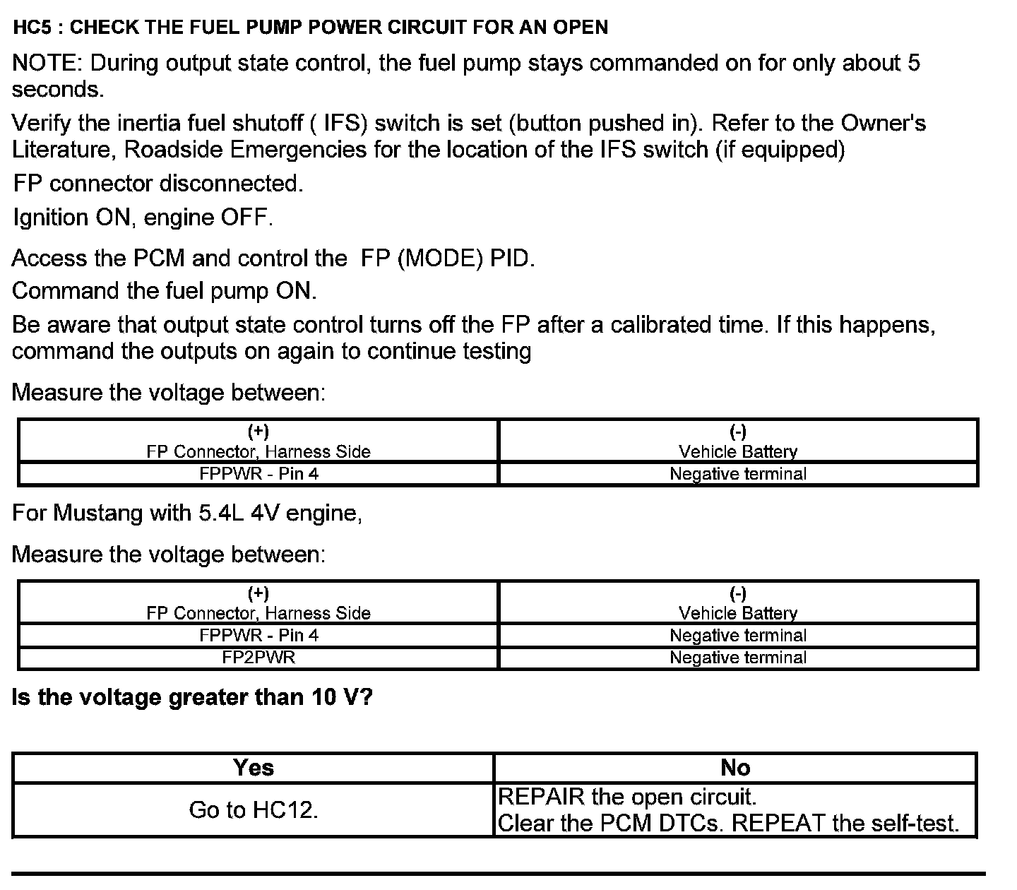 Test HC: Fuel Delivery System