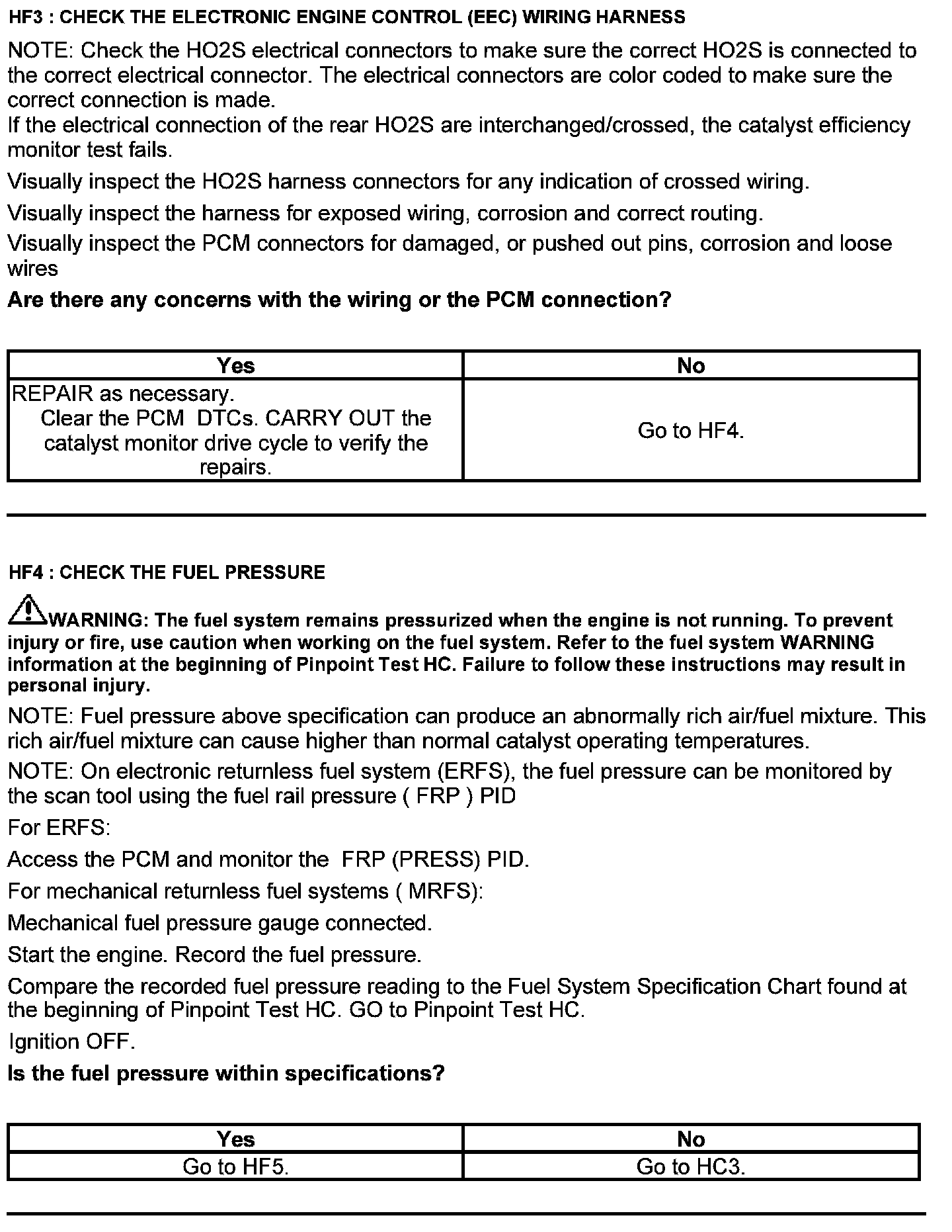 Test HF: Catalyst Efficiency Monitor and Exhaust Systems