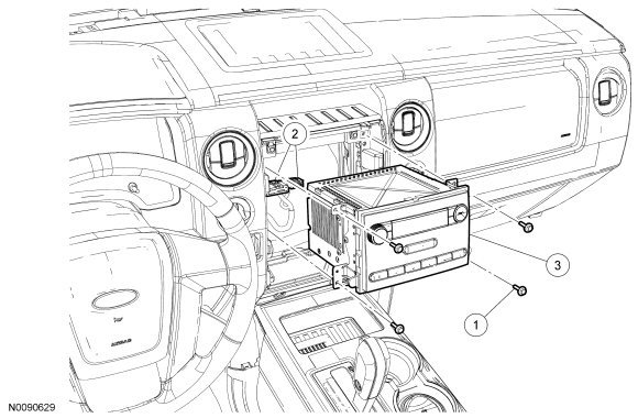 NOTE: The AM/FM Audio Front Control Module (ACM) is shown in the illustration. The in-dash computer is similar, and mounts in the same physical location.