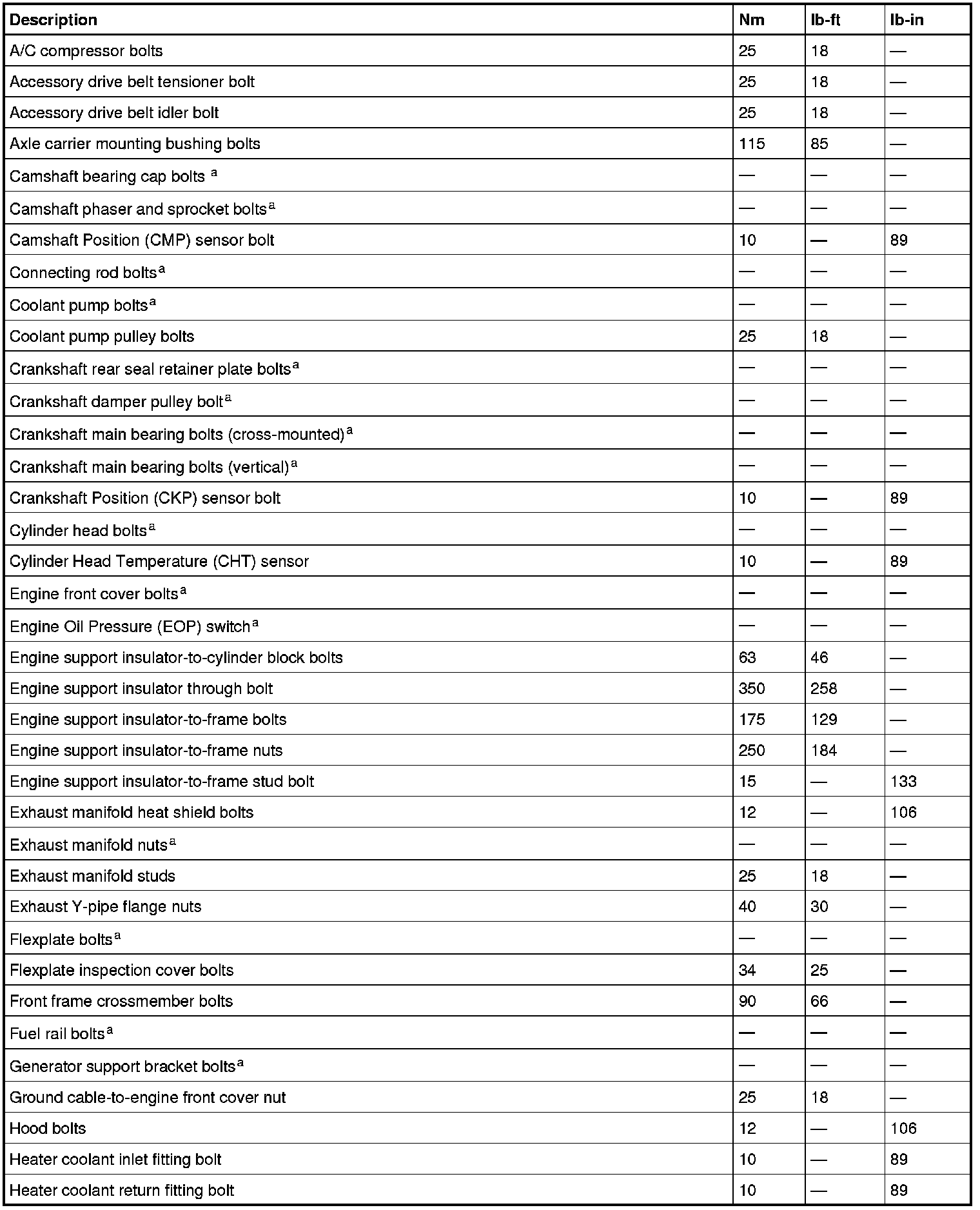 Torque Specifications