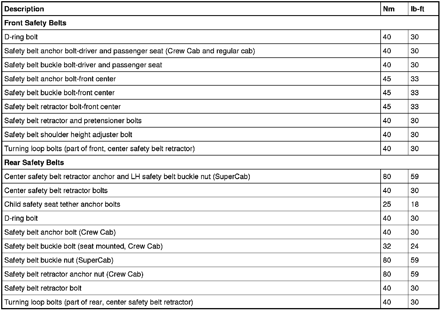 Torque Specifications
