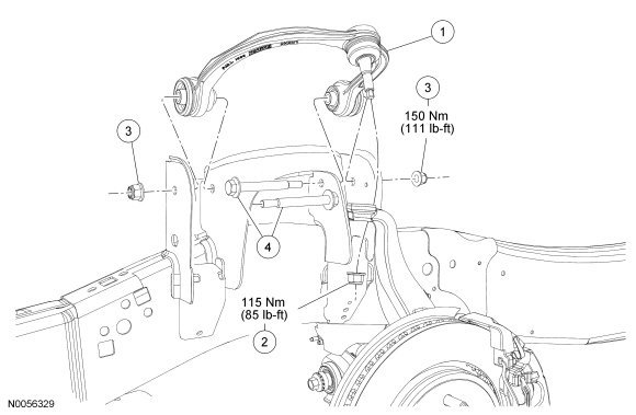 5. Tighten the upper arm-to-frame nuts to 150 Nm (111 lb-ft).