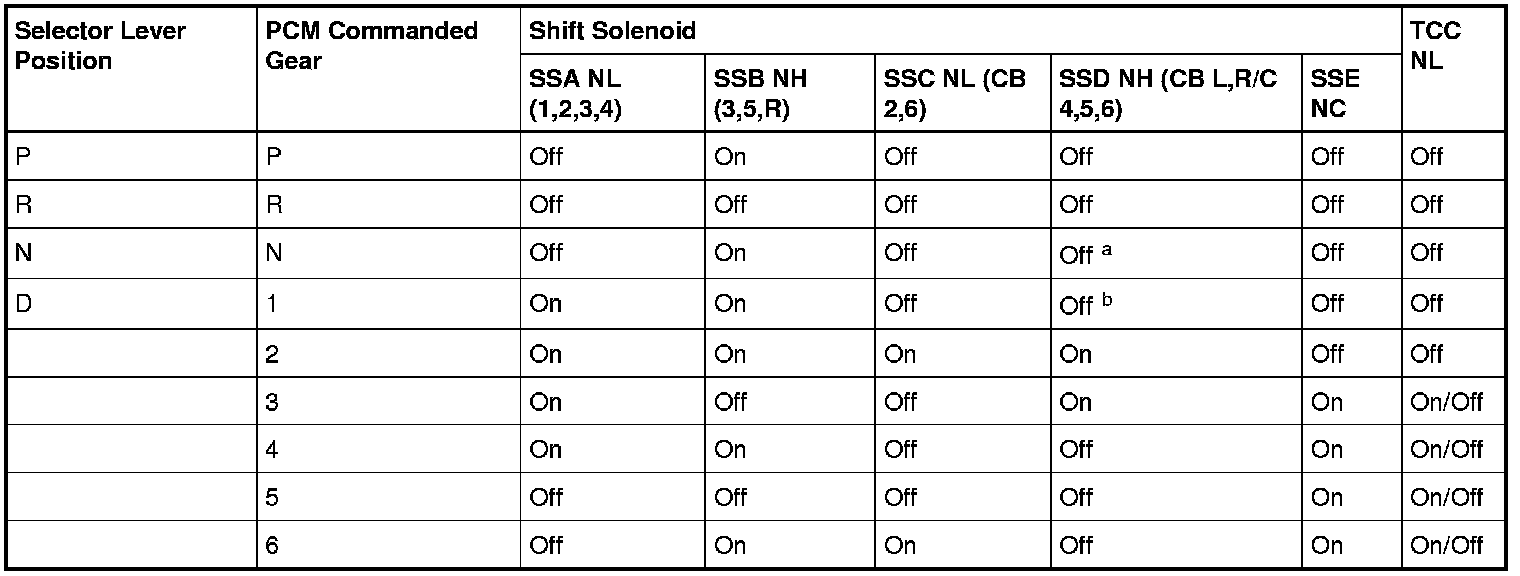 SSE (Shift Solenoid E) is an ON/OFF solenoid. When SSE (Shift Solenoid E) is in the OFF position, SSD (Shift Solenoid D) controls the regulator and latch valves to apply the low/reverse clutch. When SSE (Shift Solenoid E) is in the ON position, SSD (Shift Solenoid D) controls the regulator and latch valves to apply the overdrive (456) clutch. Refer to Hydraulic Circuits Hydraulic Circuits.