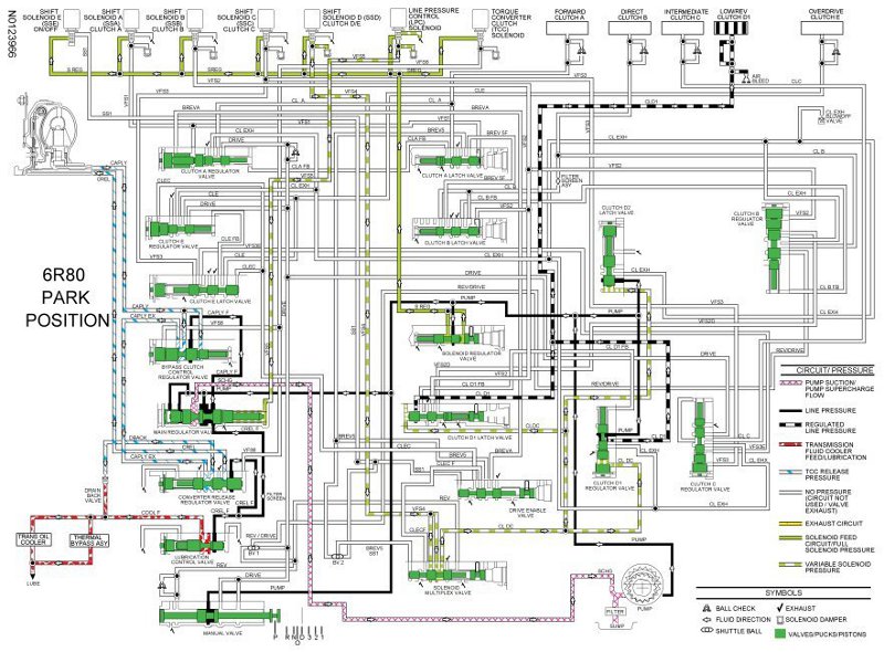 - In reverse, the manual valve directs line pressure to the No. 1 shuttle valve and the solenoid multiplex valve through the REV circuit.