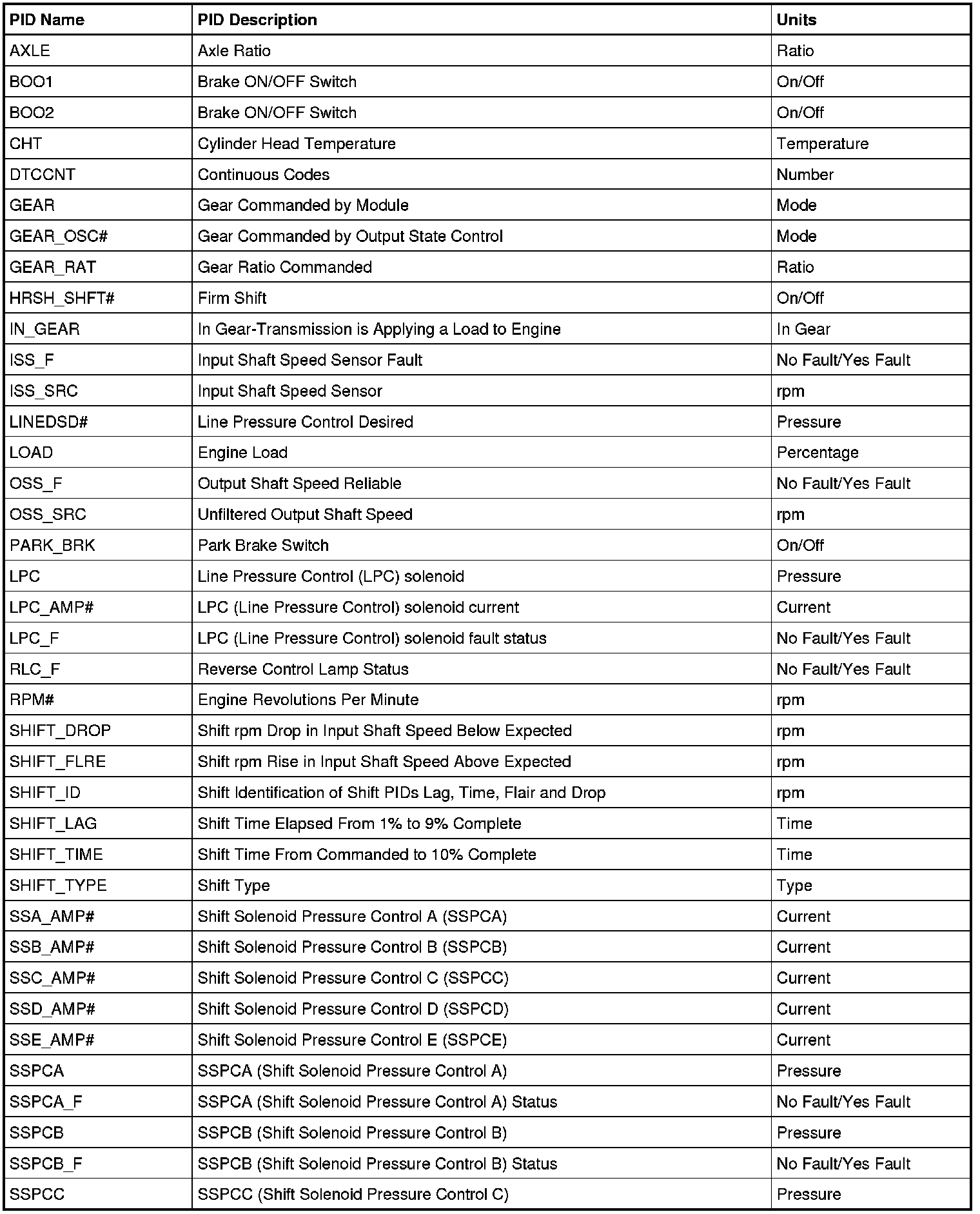 Diagnostic PID Chart