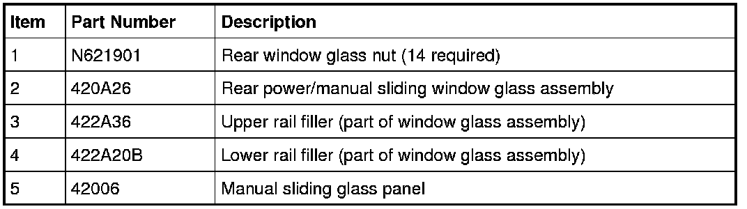 Glass, Frames and Mechanisms - Exploded View, Rear