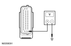- Measure the voltage between ABS module C135-1, circuit SBB47 (WH/RD), harness side and ground.