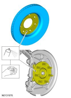 2. NOTICE: Do not allow the caliper and anchor plate assembly to hang from the brake hose or damage to the hose can occur.
