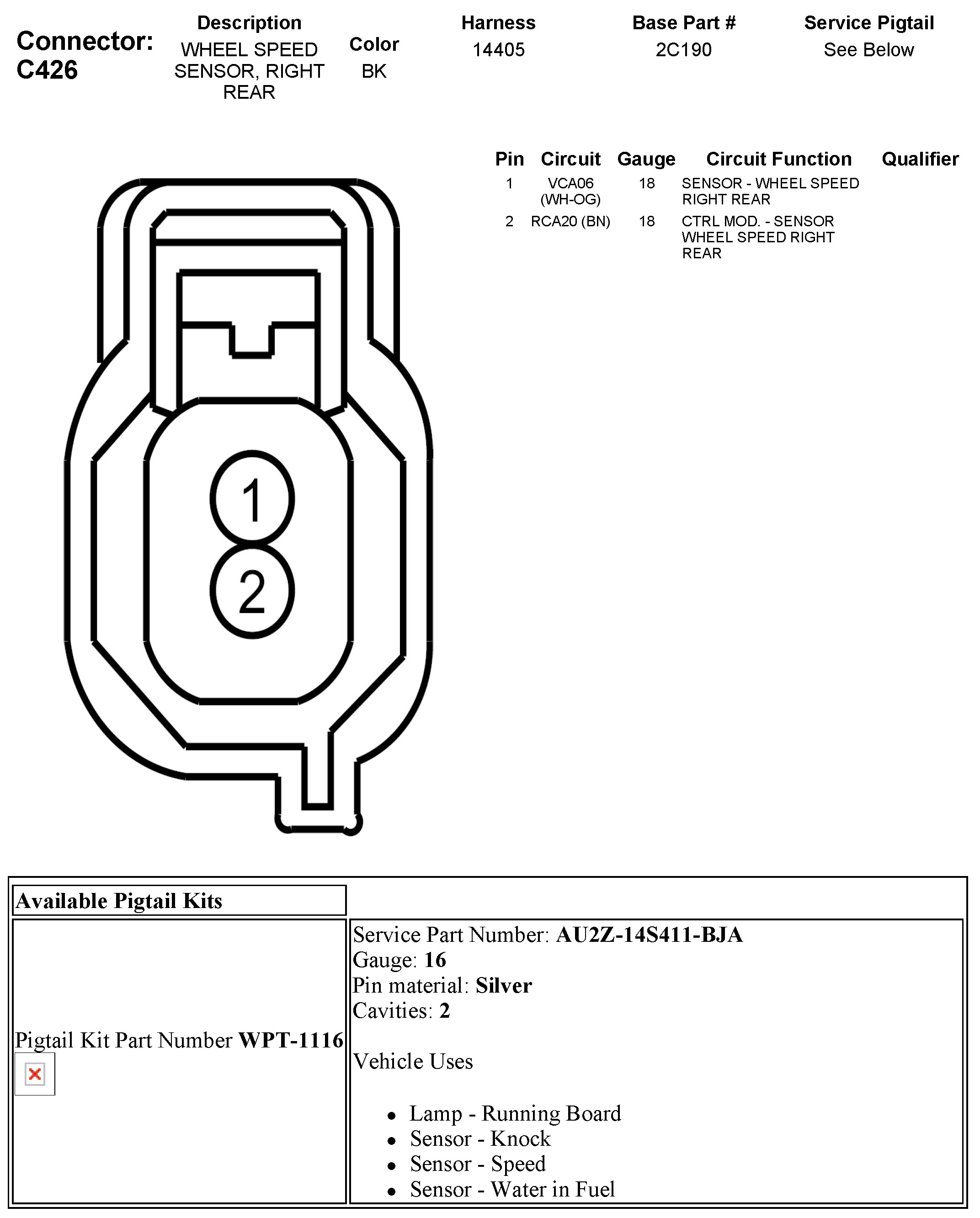 C426 Wheel Speed Sensor, Right Rear