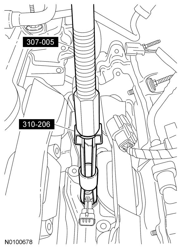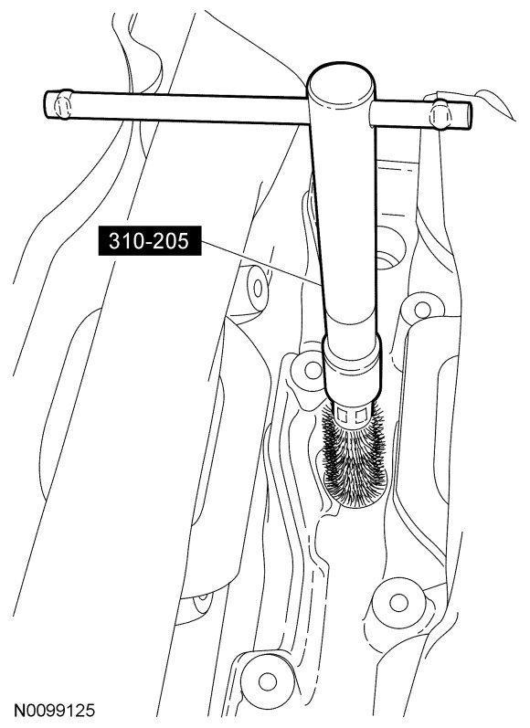 - Using the VCT (Variable Camshaft Timing) Spark Plug Tube Seal Remover and Handle, remove the seal(s).