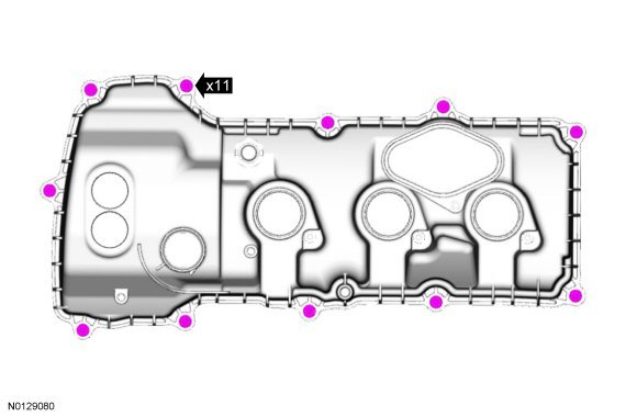 80. NOTICE: While removing the valve cover do not apply excessive force to the Variable Camshaft Timing (VCT) oil control solenoid or damage may occur.