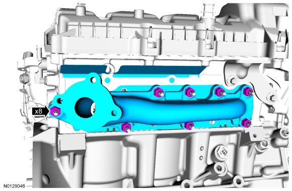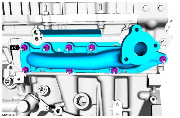 76. Remove and discard the 8 LH exhaust manifold studs.