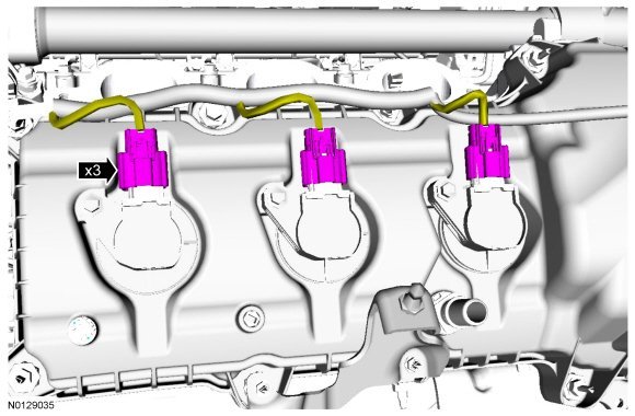 163. Connect the 3 RH ignition coil-on-plug electrical connectors.