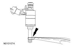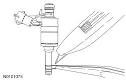141. NOTICE: Use fuel injector O-ring seals that are made of special fuel-resistant material. The use of ordinary O-ring seals may cause the fuel system to leak. Do not reuse the O-rings.